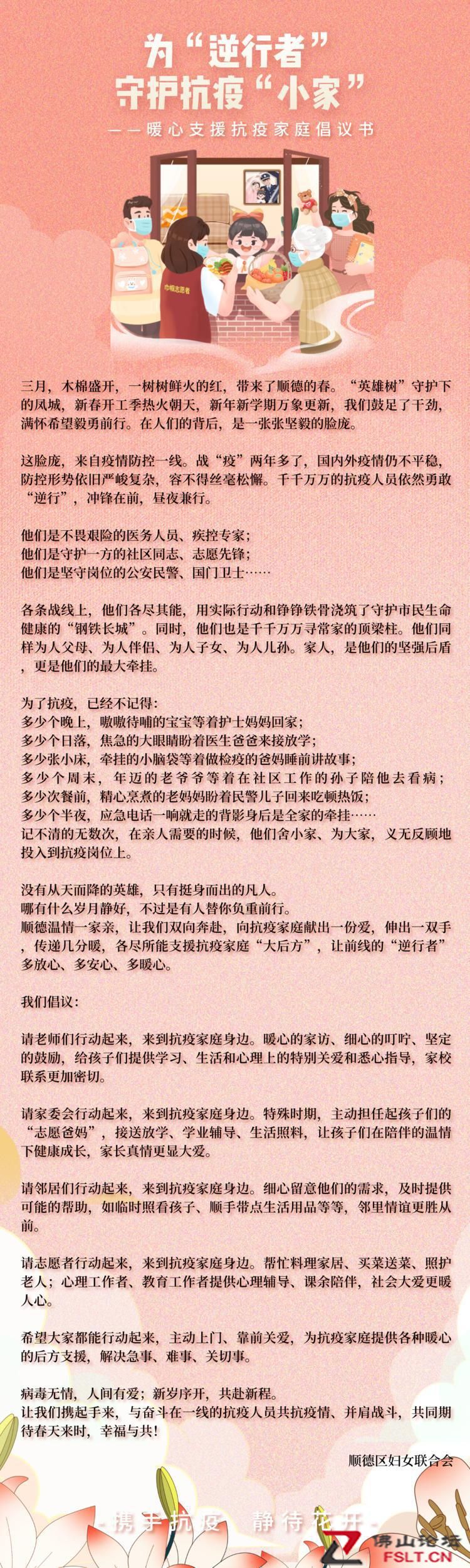 順德區(qū)婦聯(lián)相關(guān)負責(zé)人表示,區(qū)婦聯(lián)近期將組織開展關(guān)愛抗疫家庭相關(guān)工作,包括抗疫家庭親子專場活動、“零距離溝通”對話、老師家訪、志愿者服務(wù)、心理工作者陪伴、最美家庭評選等1000場活動,讓抗疫人員在一線工作更加安心暖心。