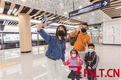 在佛山地鐵3號線東平站,市民乘坐地鐵之前拍照留念。 /佛山日報記者王偉楠攝