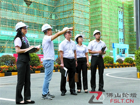 8月19日,順德農(nóng)行工作人員與華騰芯城項(xiàng)目負(fù)責(zé)人在現(xiàn)場查看村改項(xiàng)目建設(shè)推進(jìn)情況。/順德農(nóng)行供圖